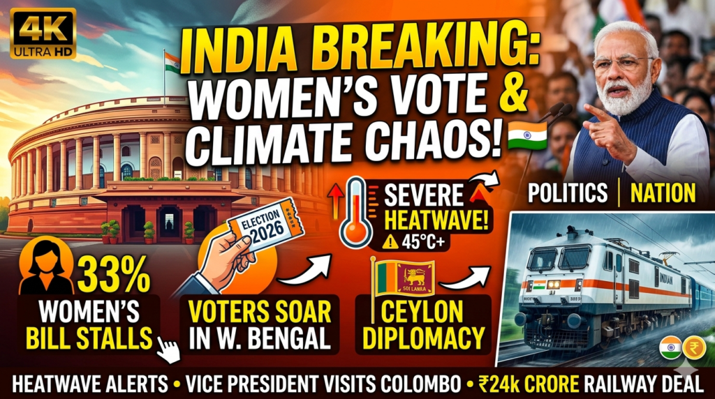 The political temperature in India is rising just as fast as the mercury. From high-stakes diplomatic meetings in Sri Lanka to a dramatic standoff over women’s representation in Parliament, today’s news cycle is packed with stories that will shape the country’s trajectory for the rest of the year.Here is your comprehensive breakdown of the trending […]
